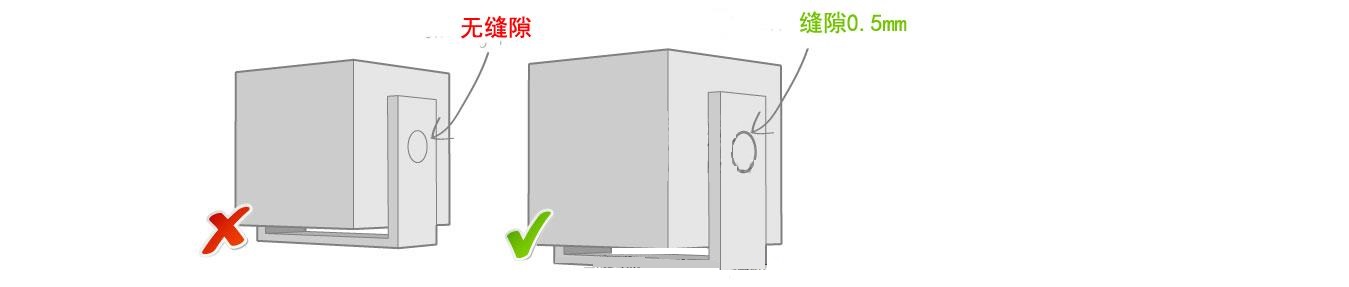 6.最小间隙 最小间隙是指两个壁厚间的最小距离,这还是跟3D打印机的物理极限有关系,如果最小间隙小于3D打印的打印极限,两个壁会合成一个导致区分不出来或者会有支撑或者残留物去不出来。-如果想一次性打印成功能活动的物品或者关节物品,关节处或连接处需要有0.5mm的缝隙来预留间隙。